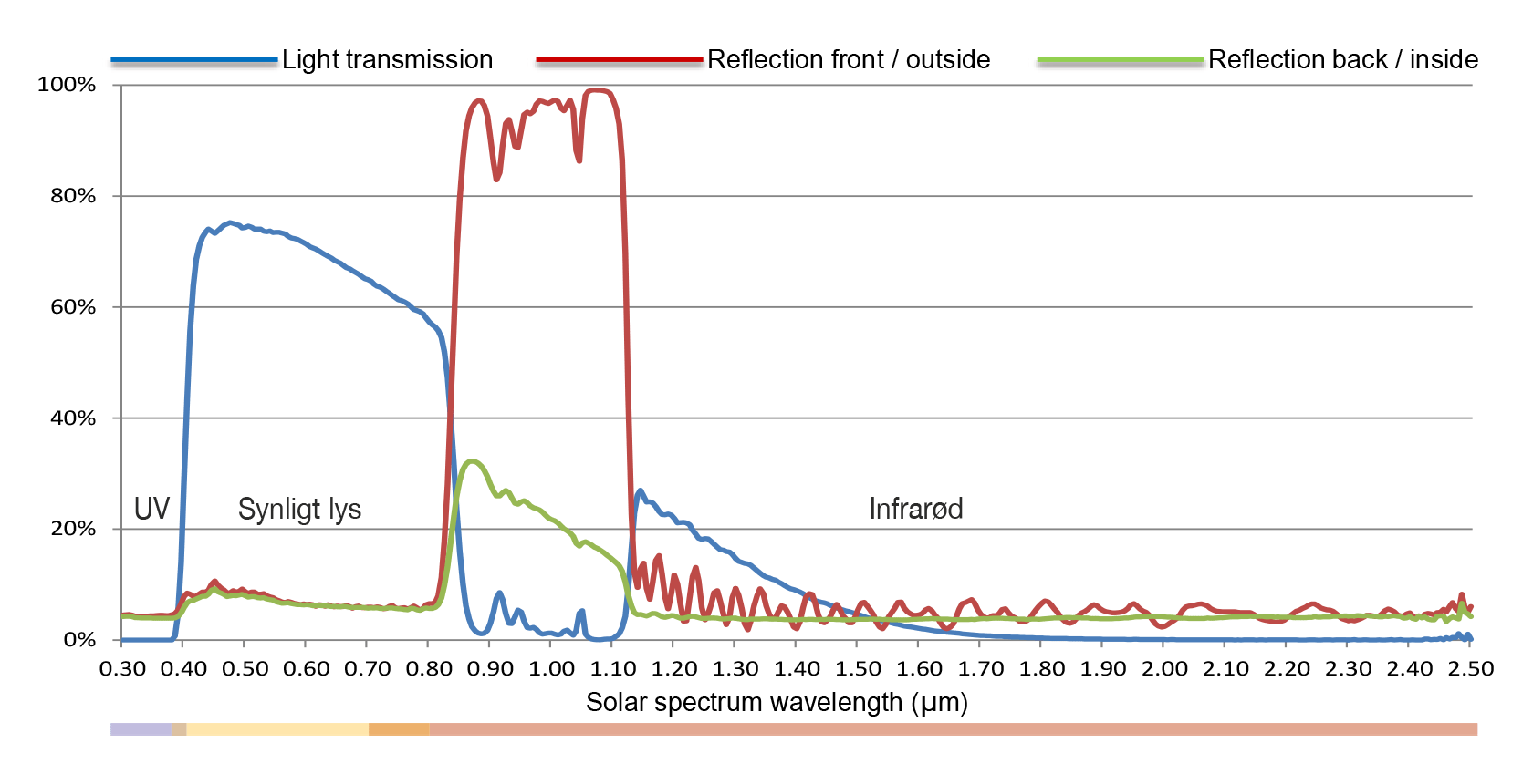 - Afviser op til 97% af solens infrarøde lys og minimerer energiudgifterne