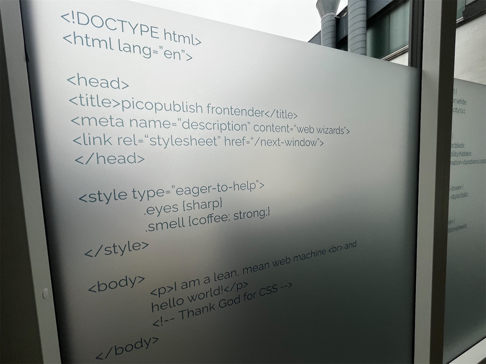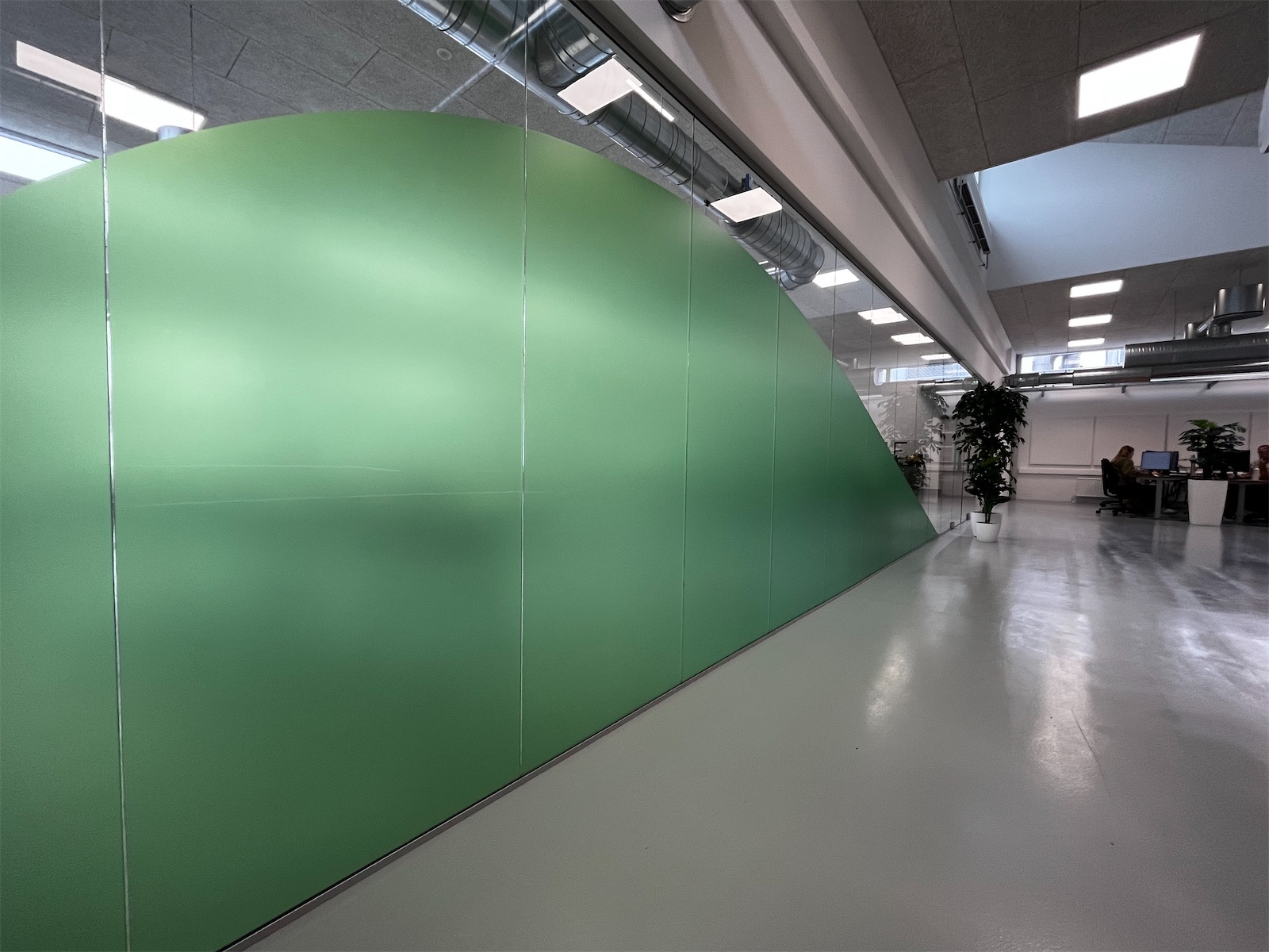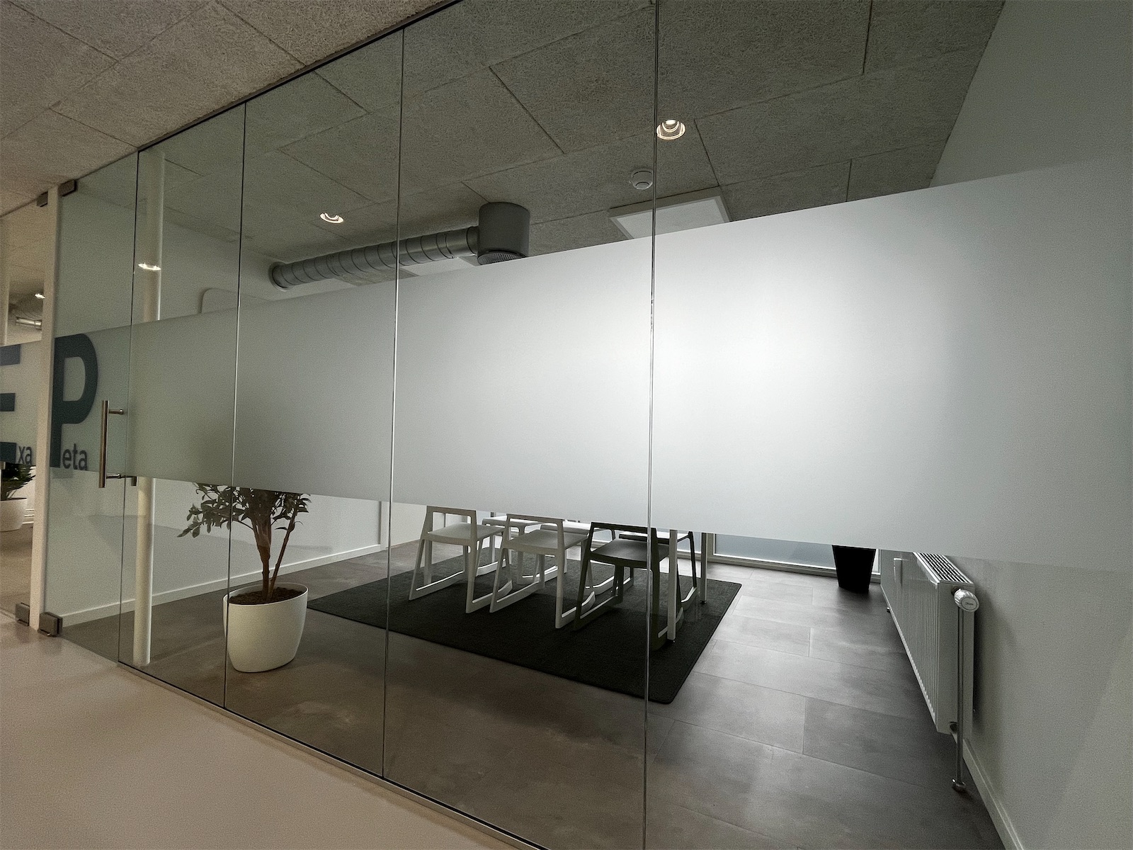 Den frostede folie på de store glasvægge er mere end blot en dekorativ løsning. Den fungerer som en integreret del af bygningens design, hvor den skaber privatliv og reducerer visuelle distraktioner uden at blokere for lys. Samtidig er folien tilpasset med branding-elementer, der styrker Pico Publishs visuelle identitet og brandgenkendelse. Denne kreative brug af folie bidrager også til wayfinding, hvilket gør det nemmere for medarbejdere og gæster at navigere i bygningen.